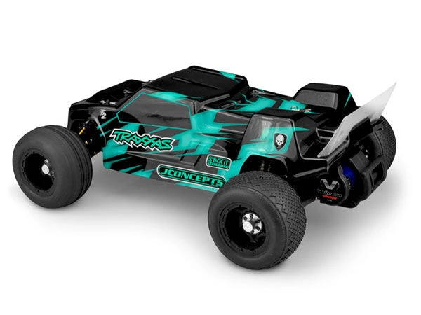 The F2 body by JConcepts has been a trend setting design since its release on the buggy population. Now, Traxxas Rustler drivers can drop-on a race favorite design to their bash vehicle of choice. As they say, the slate was once again swiped clean and the F2 was a ground up form started in the computer and ultimately finished by hand. One of the key features is an arrow based design where the front is much narrower than the rear.