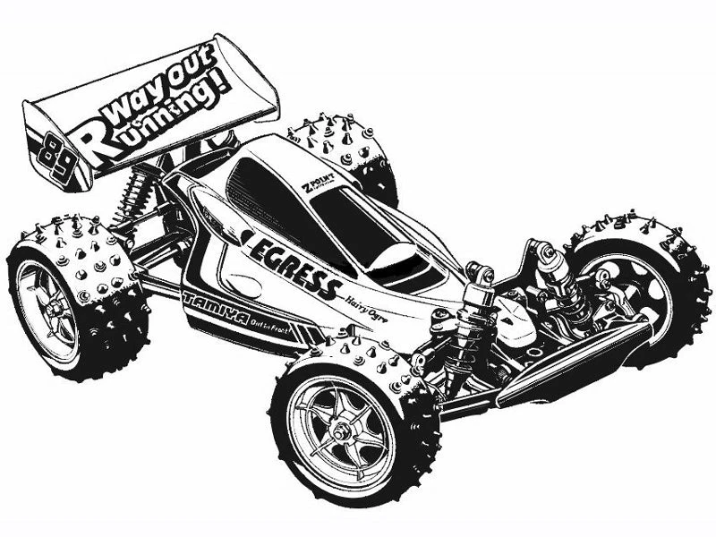 This is a colour variation of the 1/10 R/C Egress (2013) (Item 58583) – new colour stickers, dampers and uprights to match up with a black-based body (requires painting). The black colour scheme enhances the classy image of the Egress, and the black-themed packaging like the 1/10 R/C Avante (2011) Black Special (Item 47390) catches your eyes.