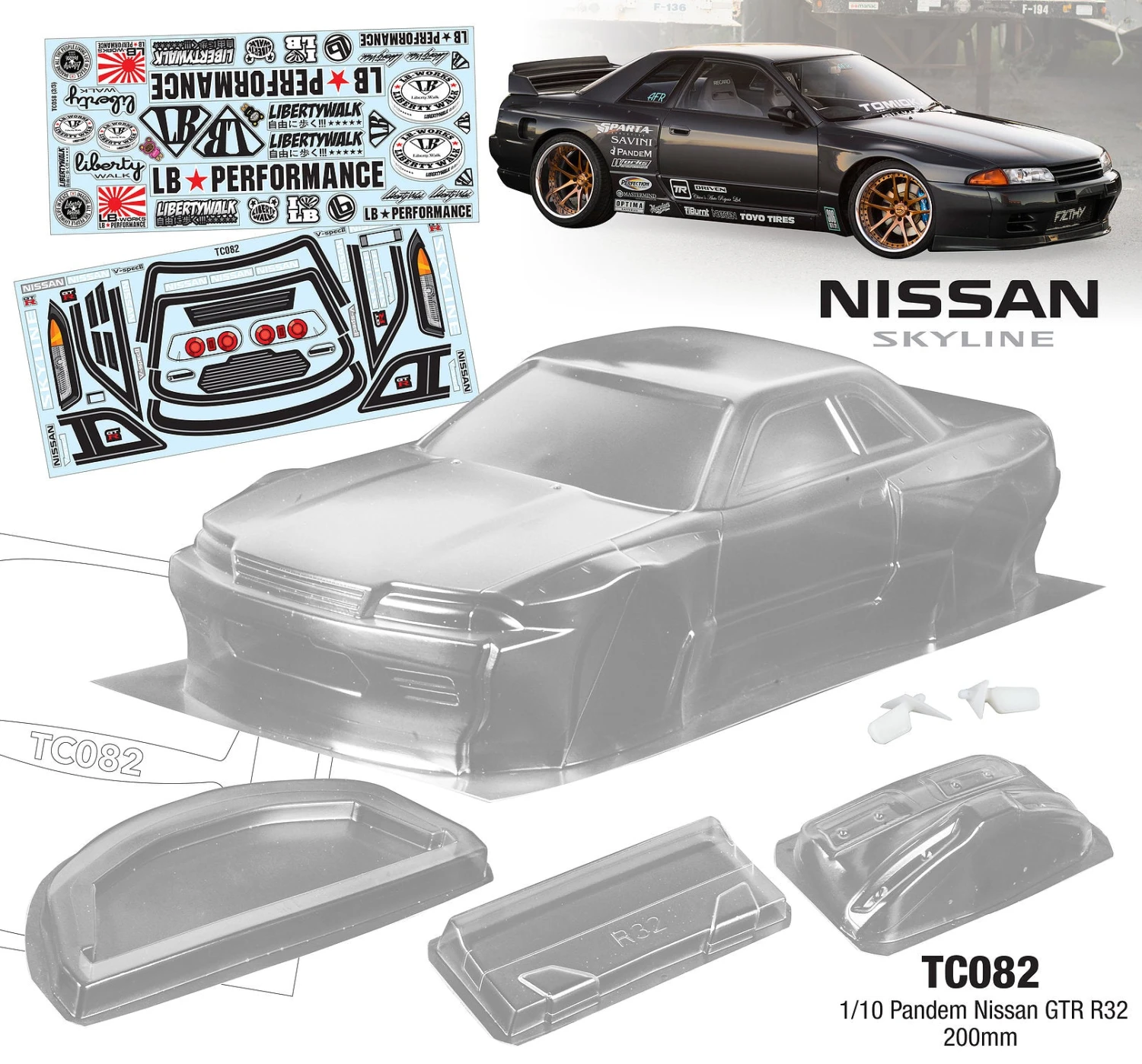 TC082 1/10 Pandem Nissan GTR R32, 200mm Tamiya TT02 TT02 Drift