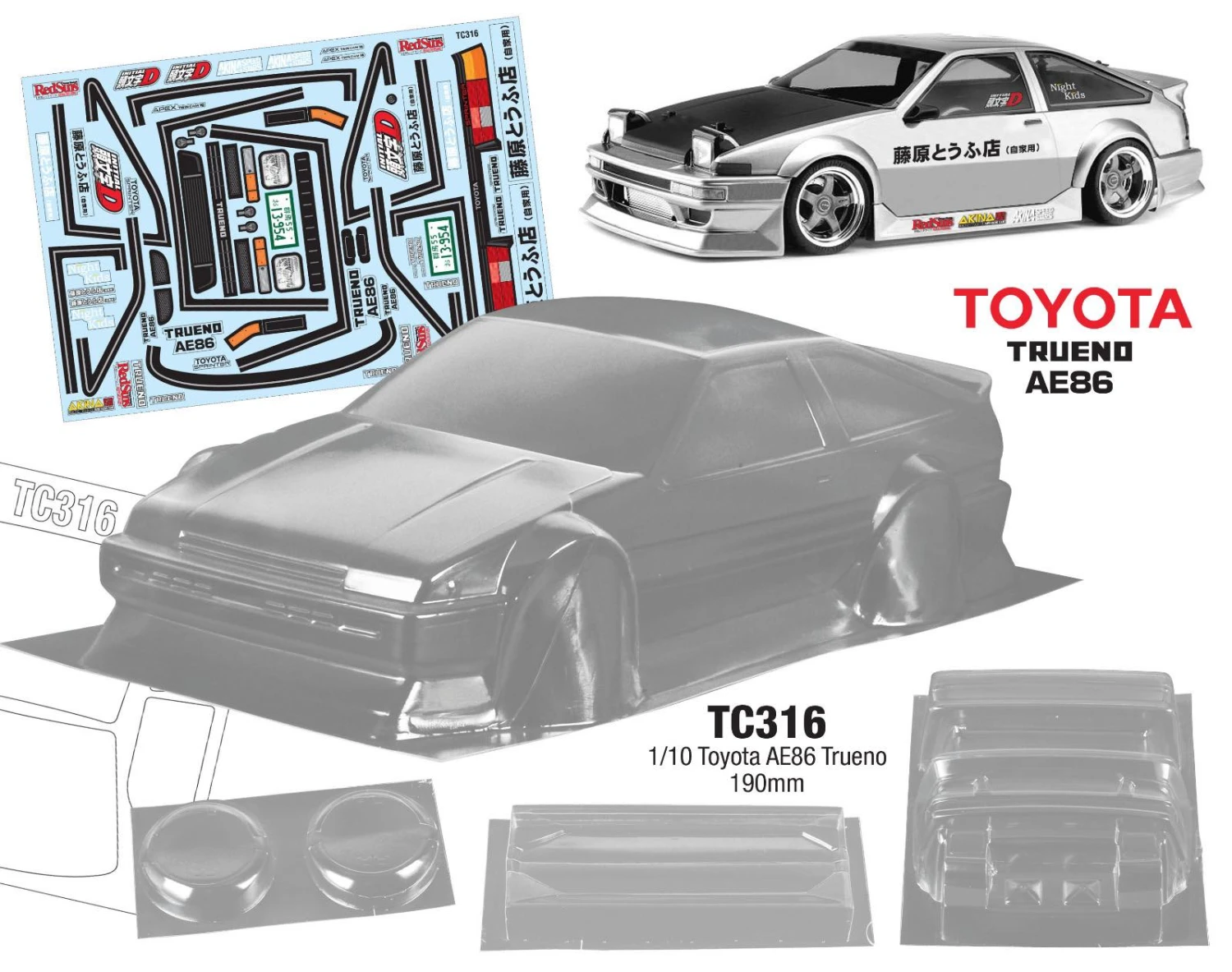 Toyota AE86 190mm X 257mm Tamiya TT01 TT02 HPI Kyosho
